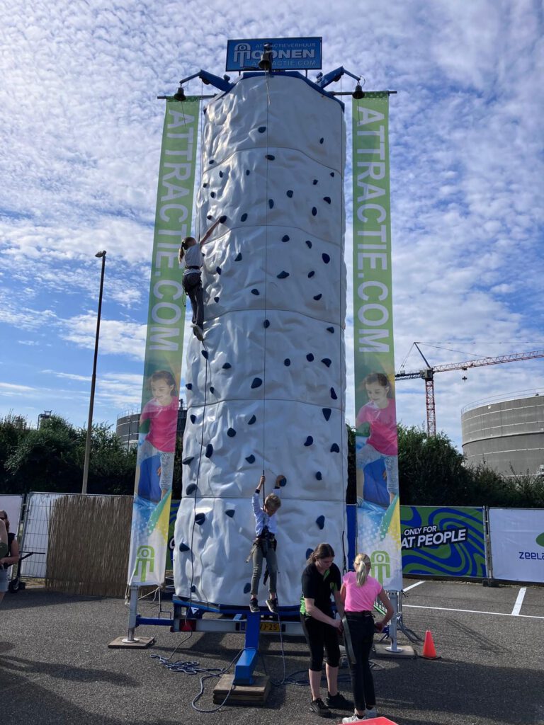Wie bedwingt deze 10 meter hoge klimwand? Wie zet de snelste tijd?